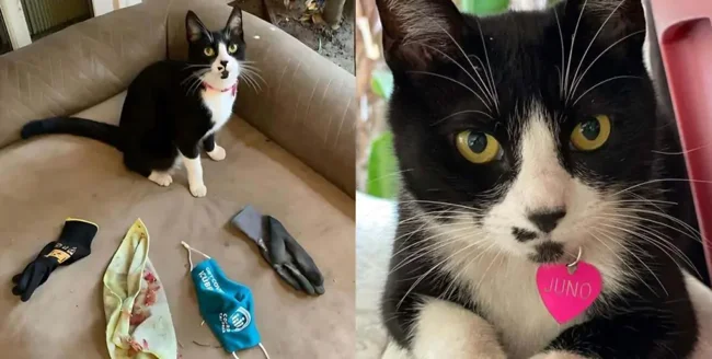 12-летняя черно-белая кошка, которую зовут Табу, обворовывает жителей городка Отли, что в Западном Йоркшире (Великобритания). Животное приносит домой перчатки, носки, трусы, обувь и другие вещи из чужих домов. Ее владелица, 62-летняя Сандра Данскин, вынуждена регулярно публиковать фотографии этих вещей в социальных сетях, чтобы люди могли забрать свое потерянное имущество.