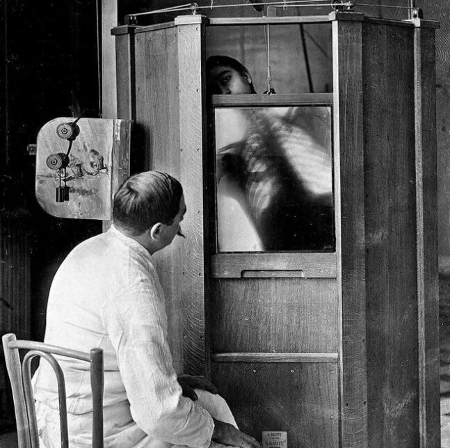 7. Рентгеновский снимок грудной клетки в отделении радиологии доктора Максима Менара в парижской больнице Кошен, около 1914 года