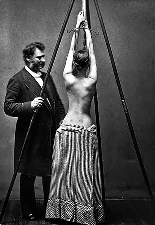 3. Женщина стоит в узкой камере, тело и конечности зафиксированы стальными тросами. Так лечили душевные заболевания в Германии конца 19 века