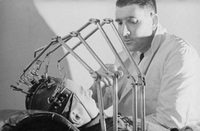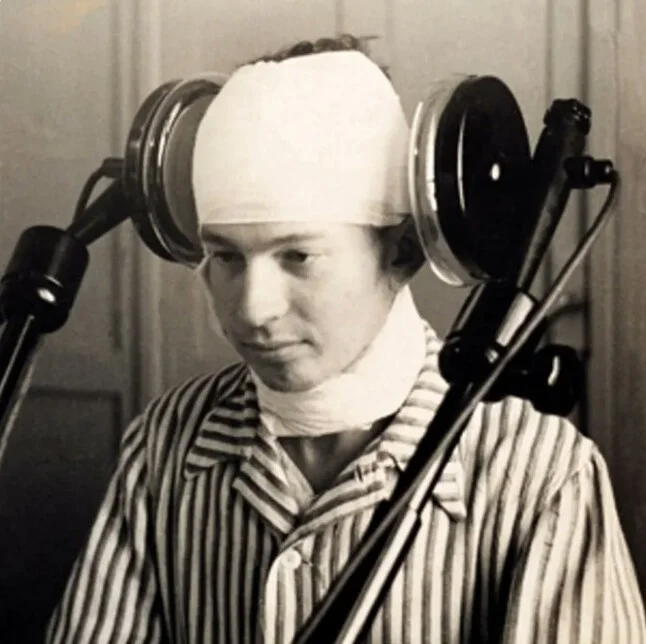 21. Пациент, проходящий лечение латеральной церебральной диатермией в начале 1920-х годов