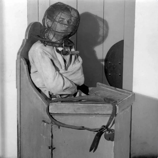 8. Транквилизатор (стул принуждения) — специальный стул, к которому привязывали буйных пациентов. Голландский психиатрический госпиталь, 1938 г.