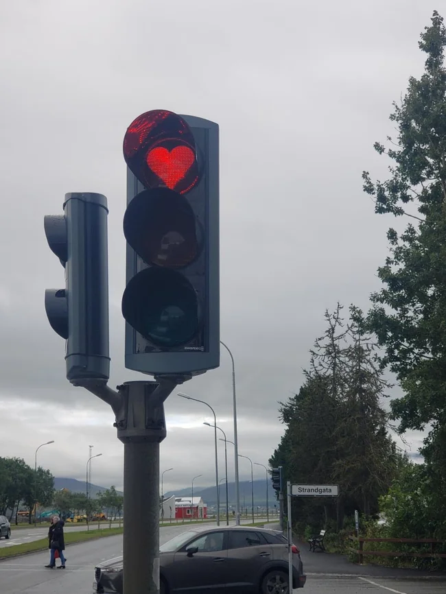 «Светофор, показывающий сердечко вместо обычного запретительного сигнала»