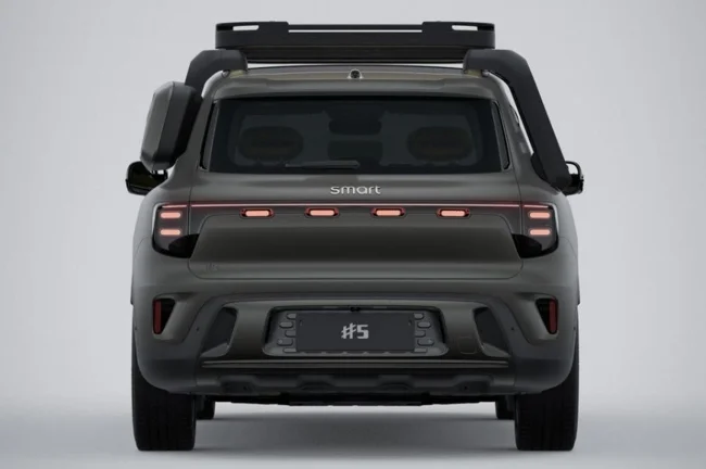При габаритах 4705×1920×1705 мм и 2.9-метровой колёсной базе новинка крупнее Nissan X-Trail и Hyundai Tucson. Объём багажника — до 1530 литров. Внешность серийного Smart #5 уже была рассекречена благодаря сертификационным фото китайского Минпрома. Сейчас компания показала ещё и вариант под названием Summit Edition, который подразумевает дополнительный свет, пороги, экспедиционный багажник с лестницами, защиту днища и навесной бокс для мелочей.
