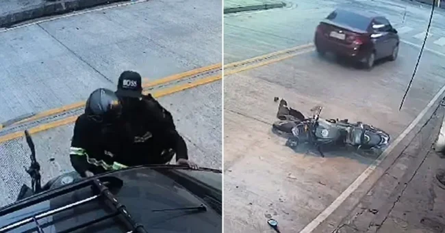 Когда один из нападавших попытался забрать мотоцикл, водитель снова дал по газам и повалил подозреваемого.