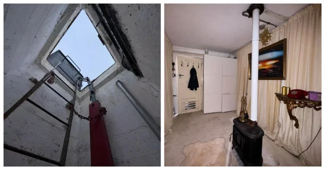 На британском рынке недвижимости появился ядерный бункер времён холодной войны. Убежище полностью оборудовано для спасения жизни людей, но в нём нет туалета. Зато в нём есть гигантская картина ядерного взрыва, бархатные шторы, печь-буржуйка и двуспальная кровать.