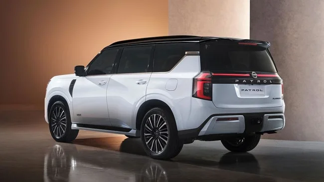 По своим габаритам новинка оказалась всего на 18 мм длиннее ушедшего Patrol (5324 мм), но зато в ширину прибавка составляет сразу 86 мм (2116 мм). Колёсная база осталась прежней — 3076 мм, а дорожный просвет равен 244 мм. Построен автомобиль на модернизированной рамной платформе и делит её не только с Armada, но и с более престижным Infiniti QX80, представленным ещё в марте. Внешне версия от Nissan выглядит заметно проще. У автомобиля более традиционная светотехника, а вместе с ней и иные прилегающие кузовные панели, своя форма остекления в задней части и обычные дверные ручки против выдвижных у QX80.