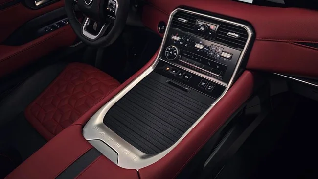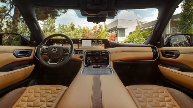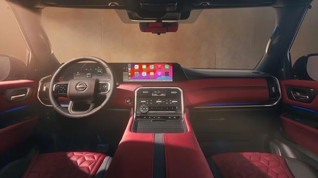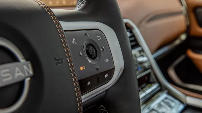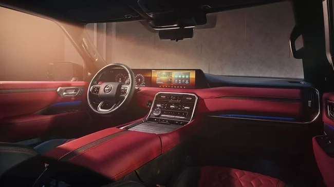 Архитектура салона у Patrol и QX80 схожа, но материалы исполнения и некоторые элементы отличаются. К примеру, для «Патрола» предусмотрены дисплеи меньшей диагонали (12.3 дюйма), а такие же 14.3-дюймовые, как у Infiniti, доступны только за доплату, как, впрочем, и проекция на лобовое стекло. В аудиосистеме Nissan может быть до 12 динамиков вместо 24 у Infiniti. Также Patrol получил собственную центральную консоль с кнопочным управлением климатической установкой, массивным боксом и шайбой управления внедорожными режимами.