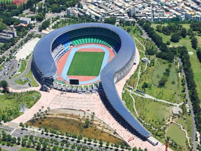 17. Национальный стадион Тайваня — крыша с солнечными панелями, вид сверху