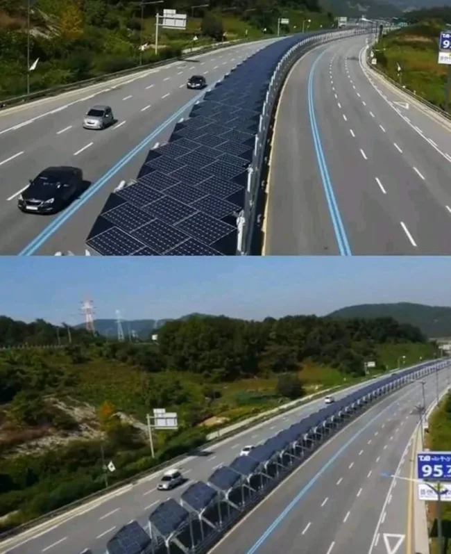 9. В Южной Корее под солнечными батареями, установленными между полосами шоссе, проложена велосипедная дорожка