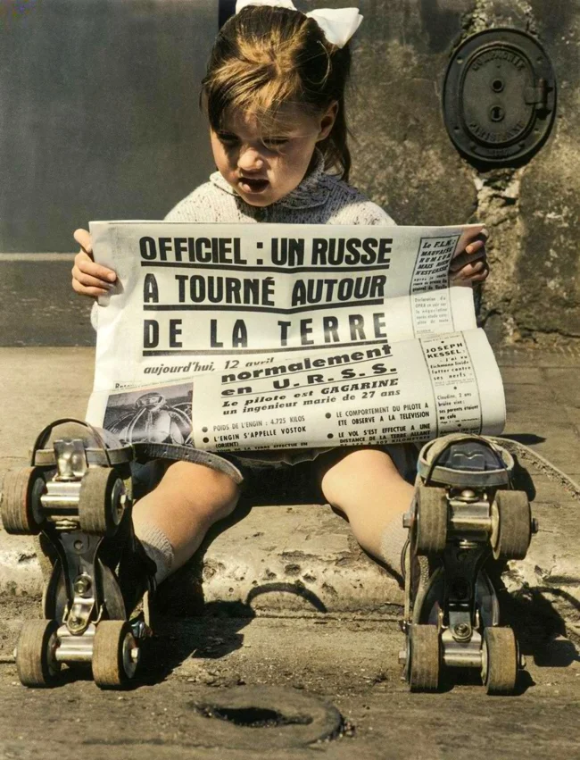Маленькая парижанка читает новость о Юрии Гагарине:
