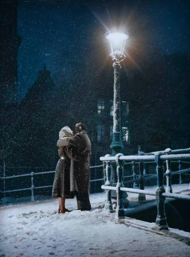 Романтика ночного Парижа 1950-х годов завораживает. В наше время на скамейке в Париже в ночное время весьма опасно. Франция уже не та... ![]()