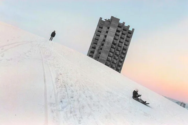 Может сложиться впечатление, что эта горка находится в одном из городов на постсоветском пространстве. Схожие панельки есть практически везде.