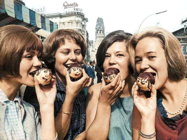 Фанатки "пробуют на вкус битлов", запеченных в кондитерским цехе на Курфюрстендамме в Берлине.