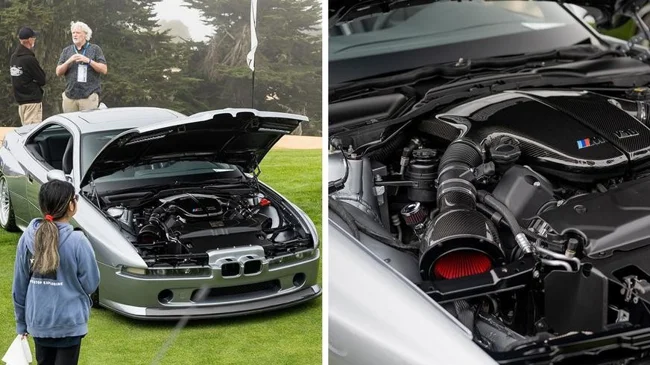 Попутно BMW 858 CSL обзавелась серьёзно модернизированным интерьером, который собрали с использованием деталей от других М-моделей. В салоне рестомода появились кресла и руль от M5 E60, иные приборы и блок климат-контроля, а также кнопка запуска двигателя. Кроме того, авто снабдили медиасистемой с контроллером BMW iDrive, которая на момент серийного производства BMW 8-й серии (E31) просто не существовала.