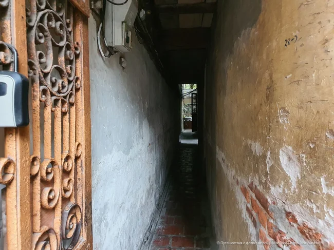 Иногда между домами оставляют очень узкие проходы, в которые может протиснуться человек или мопед.