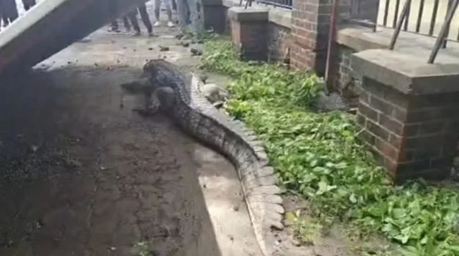 Местные не так чтобы испугались, потому что если живешь рядом с рекой, полной крокодилов, привыкаешь к ним как-то. И во время муссонов они не редко выползают за пределы реки.