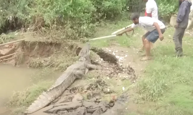 - Самый маленький пойманный нами крокодил был длиной полметра, а самый большой — 5 метров! Местные жители предупредили нас об этом огромном крокодиле, — сказал инспектор лесного хозяйства Вадодара Карансинь Раджпут.