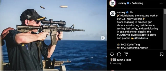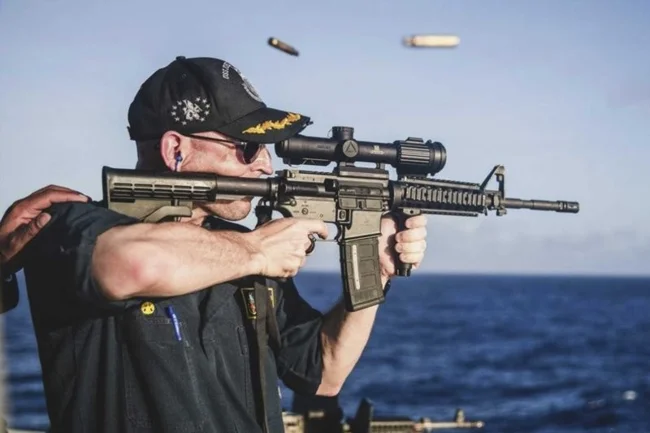 Курьёзная история произошла в США. В апреле 2024 года в запрещённой соцсети появился снимок Кэмерона Ясте, на котором он прицеливался из винтовки с оптическим прицелом, установленным задом наперед. Военный - капитан эсминца - был сфотографирован на борту этого самого судна USS John S. McCain.