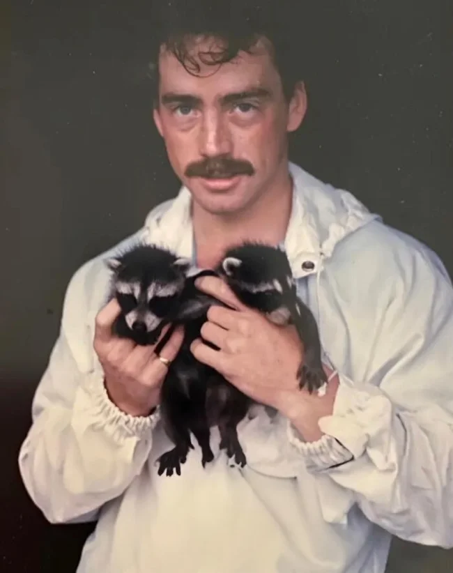 Брэд подилился: "Мне запомнилась история спасения енота Мэнди, она и служит примером миссии Gates Wildlife Control. Я вырастил детёныша енота, когда мне было 17 лет. Мэнди стала моим постоянным спутником, следовала за мной повсюду и даже научилась ловить гольянов и раков в неглубоком пруду, который я для нее создал. Меня переполняли эмоции, когда спустя время она пришла на мой свист и забралась на плечо, как в старые добрые времена. Мы провели вместе три часа на моей лужайке перед домом, питаясь бутербродами с арахисовым маслом и яйцами, и я был поражён глубиной нашей связи. Этот опыт укрепил мою любовь не только к енотам, но и ко всем диким животным, и это воспоминание до сих пор вызывает у меня тёплые чувства".