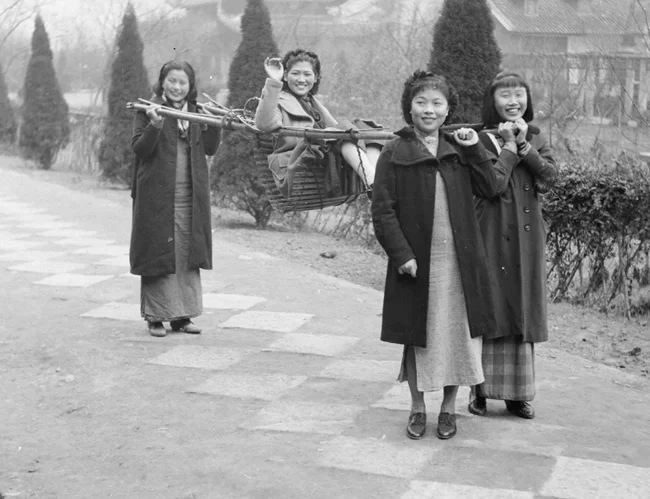 Девушки предположительно несут девушку с перебинтованными ножками лотосами