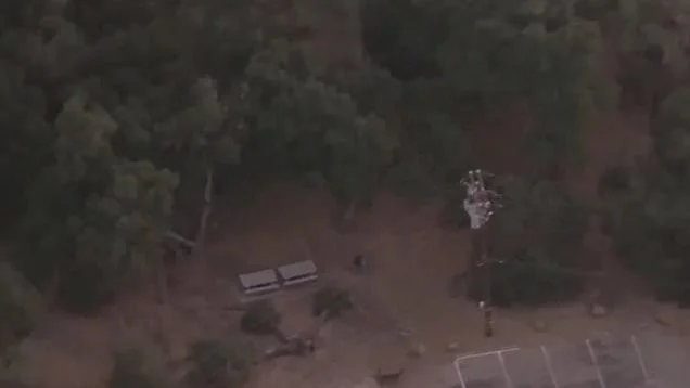 Прибывшие рейнджеры обнаружили пуму поблизости, она взобралась на дерево.