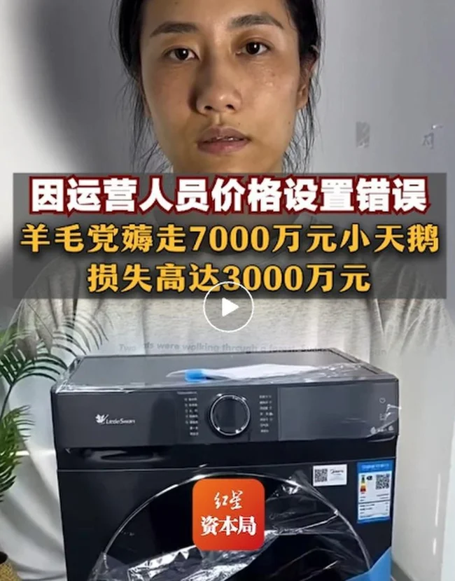 Little Swan продала стиральных машин стоимостью 70 миллионов юаней только за 40 миллионов юаней, то есть потенциальные убытки составляют около 30 миллионов, если им таки придется выполнить все заказы с неправильной ценой.