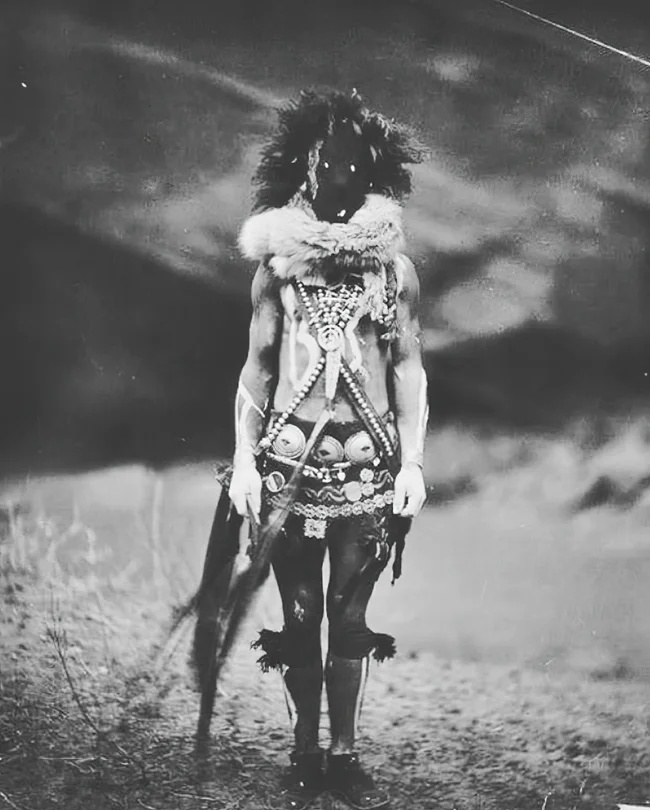 19. Мужчина из племени навахо в церемониальной маске и платье найенезгани, 1904 год