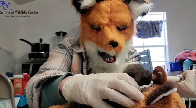 12. В центре дикой природы сотрудники надевают маску лисы, чтобы позаботиться об осиротевшем лисёнке