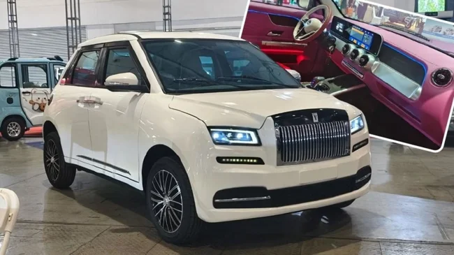 За 14 тысяч юаней можно приобрести крошечный электрический хетч, который доступен в двух вариантах исполнения, имитирующих Rolls-Royce Phantom и Mercedes-Maybach GLS соответственно. «Духа экстаза» или трёхлучевой звезды здесь не обнаружить, зато всё остальное в оформлении воспроизведено со скрупулезной точностью. Особенно круто смотрятся распашные двери.