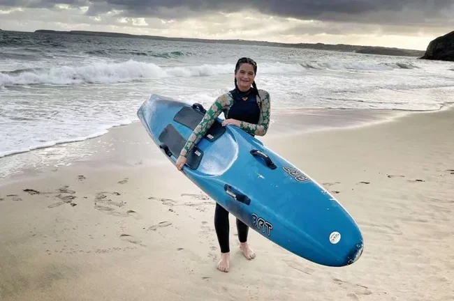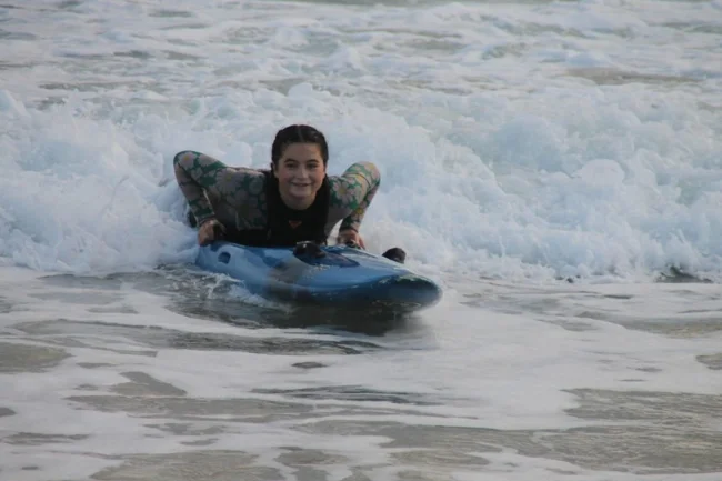 По дороге жалят медузы: 13-летняя девочка каждый день плавает в школу на серфинге (4 фото)