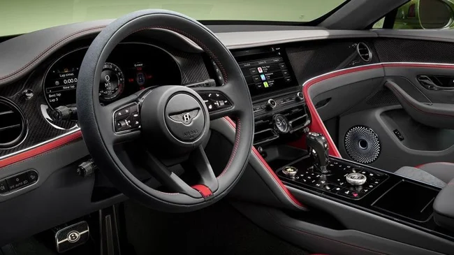 Отличить сверхмощный гибридный Flying Spur от предыдущей версии можно будет по новой решётке радиатора, доработанному аэродинамическому оперению и свежим 22-дюймовым колёсам. В салоне внешних изменений почти не произошло, но есть усовершенствования по технике. Медиасистема получила более продвинутую оболочку, климатическую установку дополнили ионизатором, а среди дополнительного оборудования появились более комфортные сиденья Welness. Они способны автоматически регулировать микроклимат при помощи систем подогрева и вентиляции на основании показаний встроенных датчиков температуры.