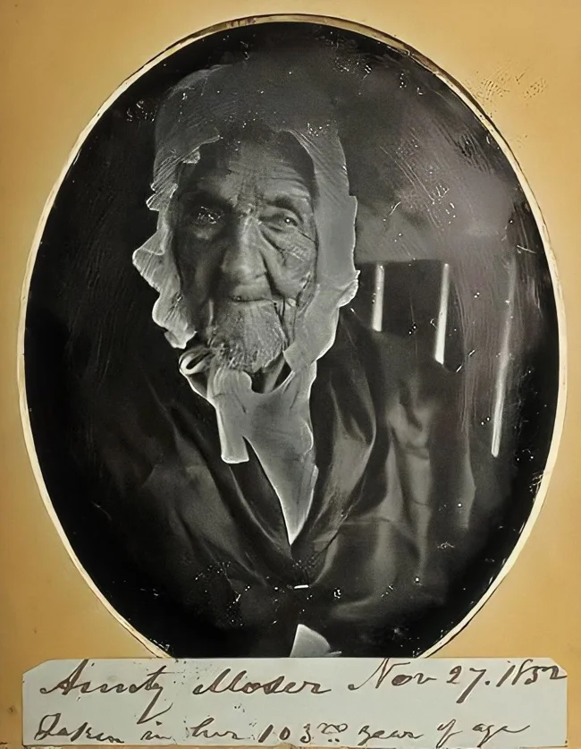 Эта фотография тётушки Мозер была сделана в 1852 году, когда ей, по некоторым данным, было 103 года, что делает её одной из самых старых людей, которые были сфотографированы. Если её возраст соответствует действительности, то она родилась в 1749 году.
