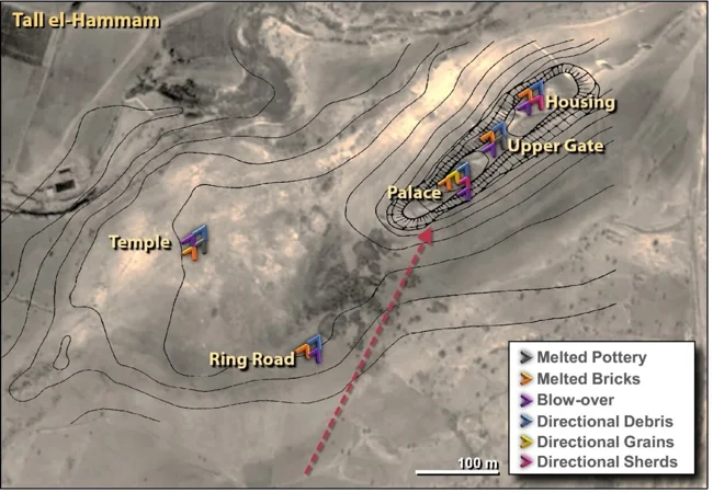 Воссоздать картину гибели Телль-эль-Хаммам учёным позволила масса археологических свидетельств. Например, обломки верхних 12 метров главного дворца нашли в долине за несколько сотен метров от его фундамента и первых этажей. Всю площадь города покрывает полутораметровый слой, датируемый средним бронзовым веком, с явными признаками воздействия высоких температур и мощной ударной волны в виде оплавленных материалов, включая металлы.