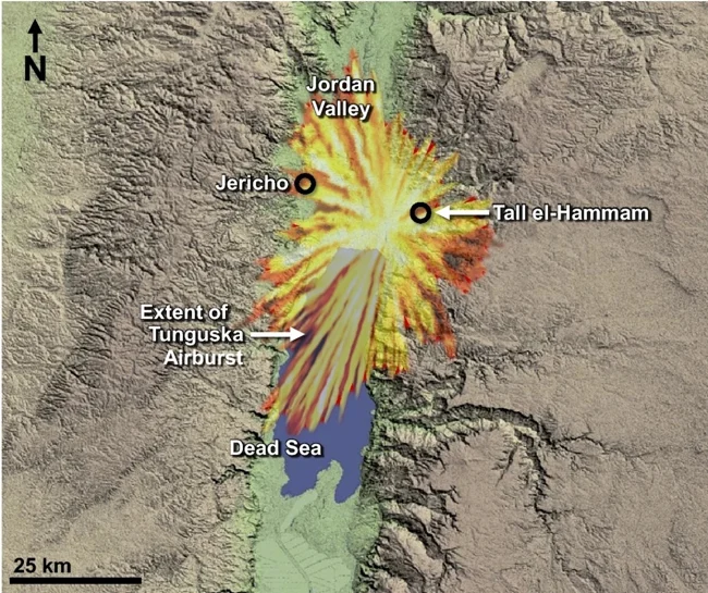 Исходя из накопленных данных, учёные пришли к выводу, что землетрясения, извержения вулканов, молнии, лесные пожары и войны не могут объяснить всей картины произошедшего. Единственное, что полностью укладывается в неё — взрыв крупного ледяного метеорита вроде Тунгусского. Компьютерное моделирование подтвердило, что Тунгусский метеорит мог вызвать примерно такие же разрушения, если бы он упал в районе Телль-эль-Хаммам и Иерихона 3600 лет назад.