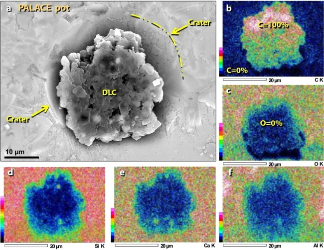 Углерод из храмовой и дворцовой керамики, сплавившийся в алмазоподобное состояние