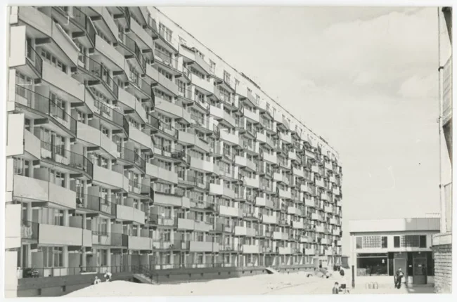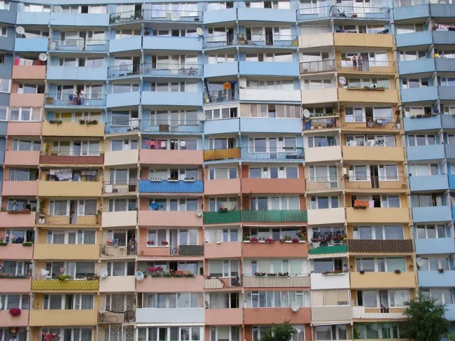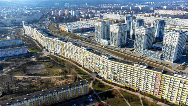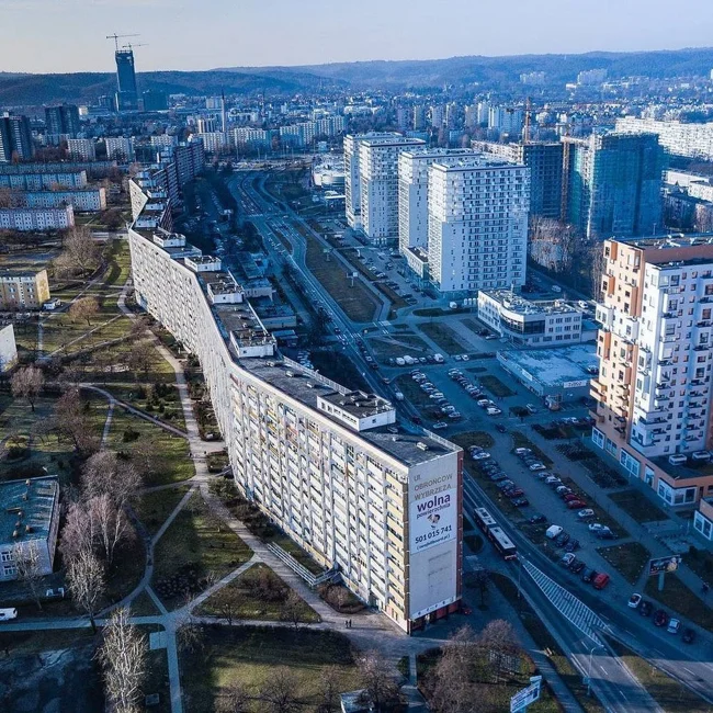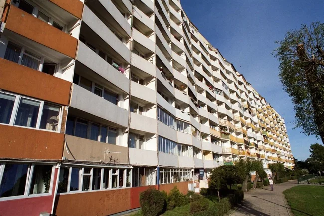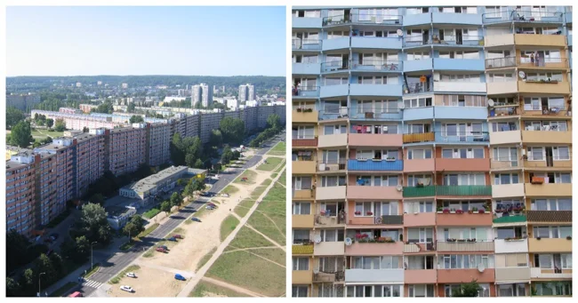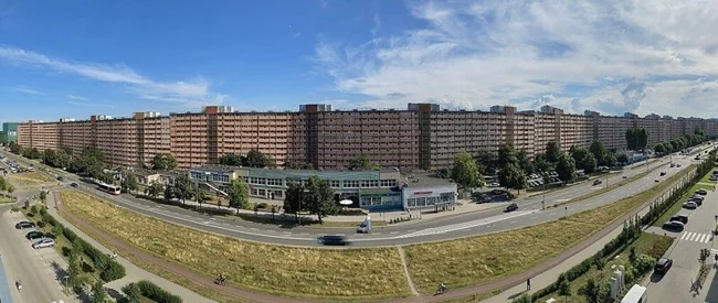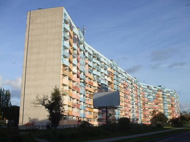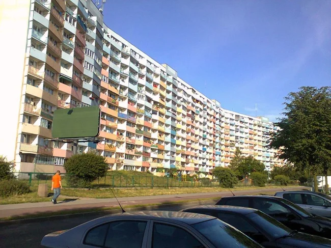 В Гданьске насчитывается восемь таких зданий, самое известное расположено в квартале Пшиможе. В нём 11 этажей, 16 лестничных пролётов, 1 792 квартиры, в которых живут около шести тысяч жильцов. Это похоже на целый маленький город.