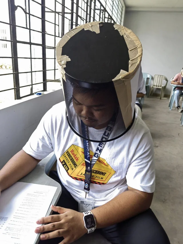 Студенты инженерного колледжа Университета Бикол в филиппинском городе Легаспи начали разрабатывать необычные устройства для головы, которые помогают избежать списывания. Забавно, что эта практика уже стала традицией, распространившись по всему интернету. Эта инициатива была начата преподавательницей и профессором машиностроения Мэри Джой Мандане-Ортис еще в 2022 году. Она потребовала от своих студентов изготовить своими руками шляпы, чтобы те не могли видеть ответы соседей по бокам. Такие креативные решения стали популярными среди студентов, поэтому мы решили собрать наиболее интересные варианты головных уборов, появившиеся за последние два года.