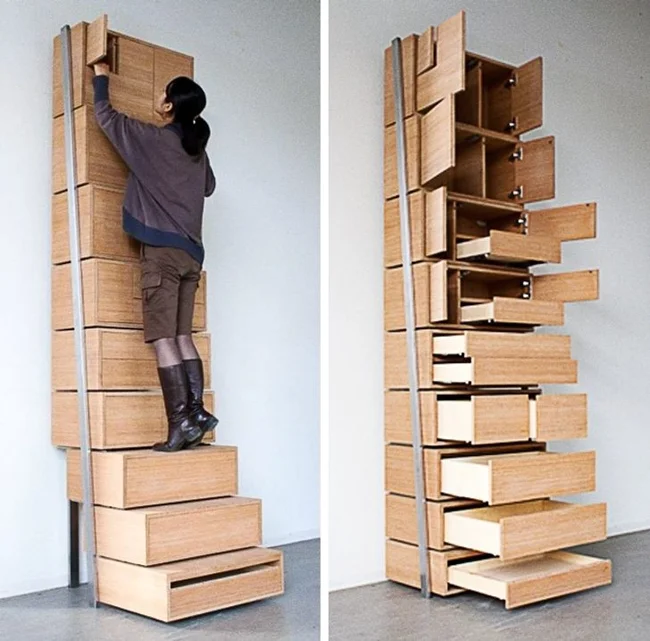 6. Шкаф-лестница, чтобы любая вещь была под рукой