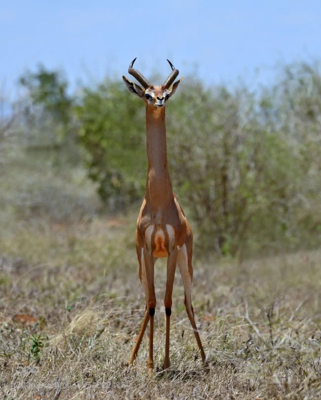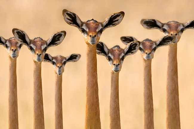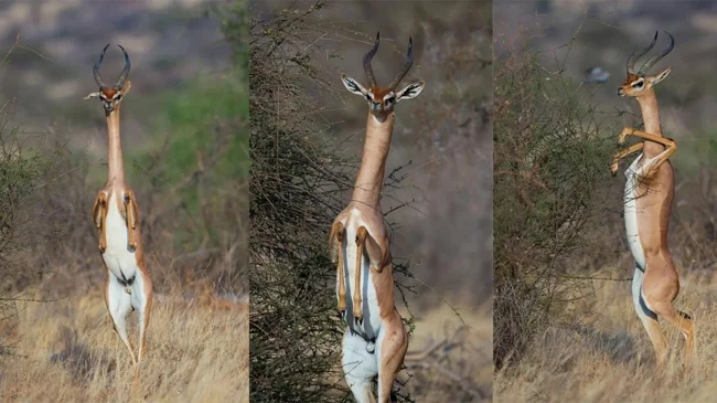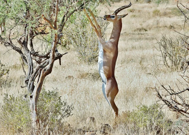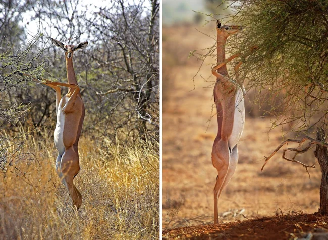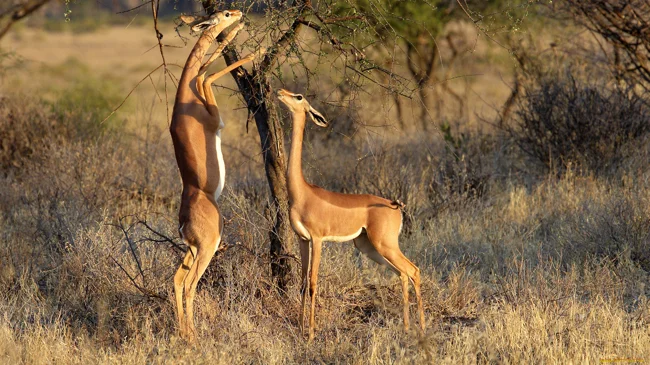 Сторонники теории эволюции говорят, что люди произошли от обезьян. Сторонники теории заговора утверждают, что наши предки — дельфины. А вдруг мы — потомки геренука? Взгляните, как эта газель ловко держится на задних ногах!