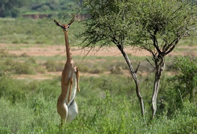 Второе название геренуков — жирафовая газель. Не сложно догадаться, почему.