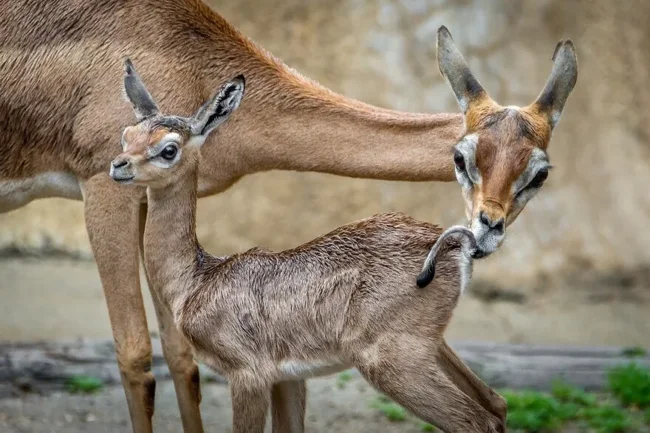 Параметры геренука тоже антропоморфны: в холке рост газели не больше метра. А стоя на задних ногах, она вырастает до 2 метров! Одна треть из которых, правда, приходится на шею. Весит при этом копытное до 50 кг.