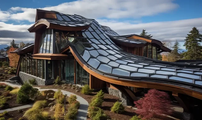 Эта идея отличается перевернутой V-образной формой. Этот дизайн не только эстетически привлекателен, но и способствует сбору воды и повышению энергоэффективности.