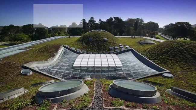 А крыша здания - это целая экосистема с лесом, планетариями и аквариумами, используемыми для проведения исследований.