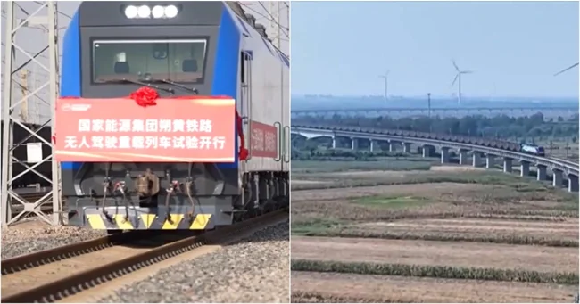 В Китае протестировали гигантский беспилотный поезд (3 фото + 1 видео)