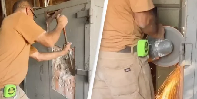 Не имея возможности попасть внутрь, несмотря на попытки взломать его различными инструментами, она наняла подрядчика, чтобы тот просверлил сейф и открыл его.