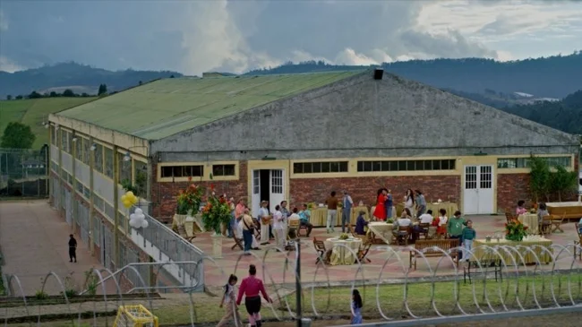 Гигантская фреска с изображением Эскобара за решёткой висит на оригинальной бетонной стене, поддерживающей одно из новых зданий для пожилых людей. Под ней написано: «Те, кто не знает своей истории, обречены на её повторение».