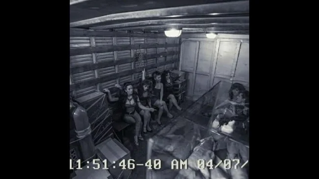 Посетителей и припасы в Ла-Катедраль привозили на грузовиках, как видно на этом снимке с камеры наблюдения внутри грузовика.