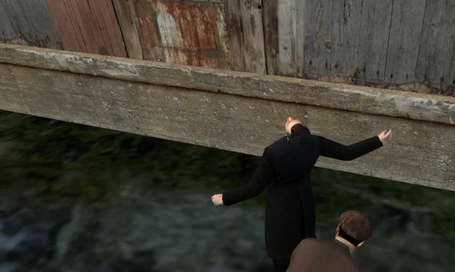 14. Помните, что в обучающей миссии голос некоего комментатора рассказывал нам, что мы должны делать? Так вот, этот голос был не с потолка. Для его реализации потребовалось ввести отдельного персонажа и спрятать его за забором. Если забраться на ящики, а затем прыгнуть на подогнанную машину и перемахнуть через забор, то мы увидим этого самого комментатора.