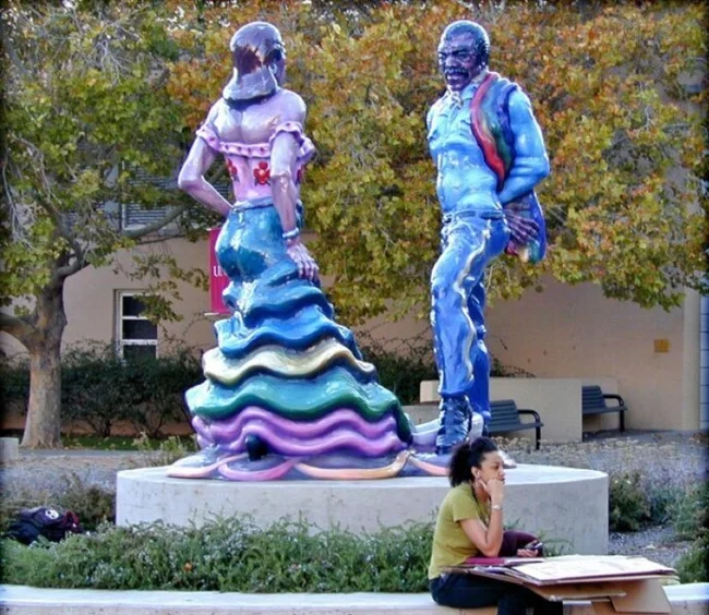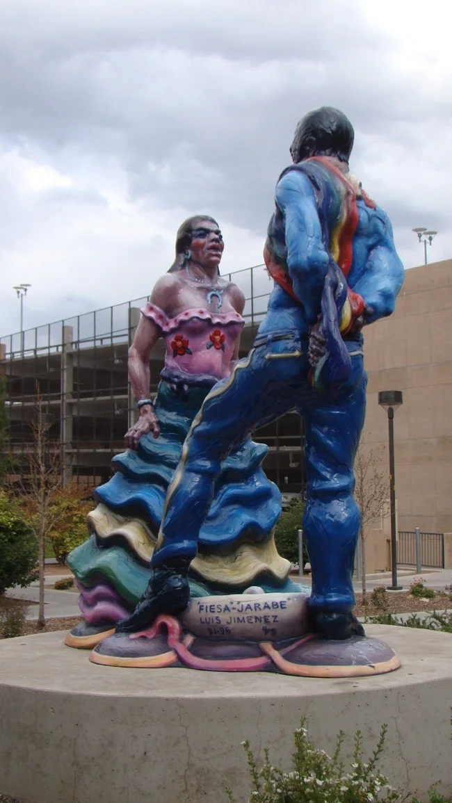 Автор скульптурной композиции «Фиеста», установленной в Альбукерке, США, Луис Хименес. Изначально завораживающе-страшных танцоров решили использовать как жупел, чтобы отпугивать нелегальных мигрантов. Но мексиканцы не впечатлились застывшим диким танцем, и парочка отправилась на территорию местного университета, чтобы доводить до истерики студентов и преподавателей.