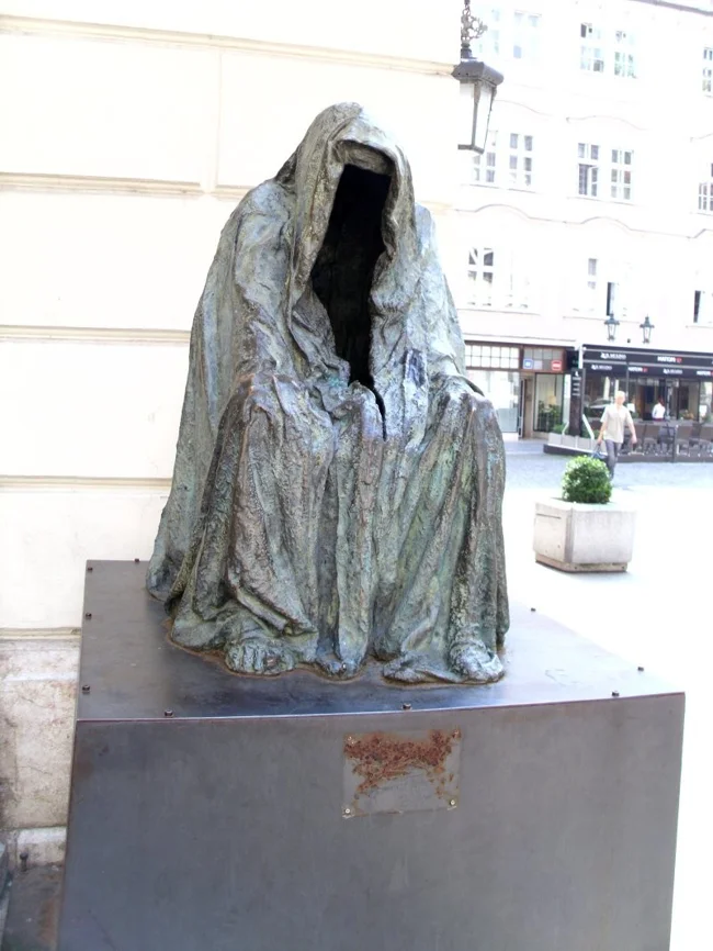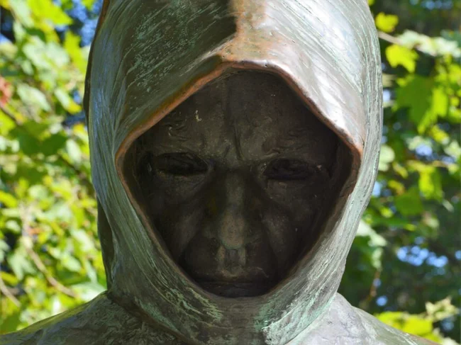 Автором двухметровой бронзовой скульптуры, установленной в Будапеште в 1903 году, стал Миклош Лигети. Она явно популярная, судя по натёртости металла. Считается, что прикосновение к перу скульптуры, прототипом которой стал королевский нотариус, дарит вдохновение и удачу в науке. А если посидеть у него на коленях, то успех в делах гарантирован. Вот только в глаза этой в общем интересной классической скульптуре смотреть не хочется по причине их полного отсутствия. ![]()